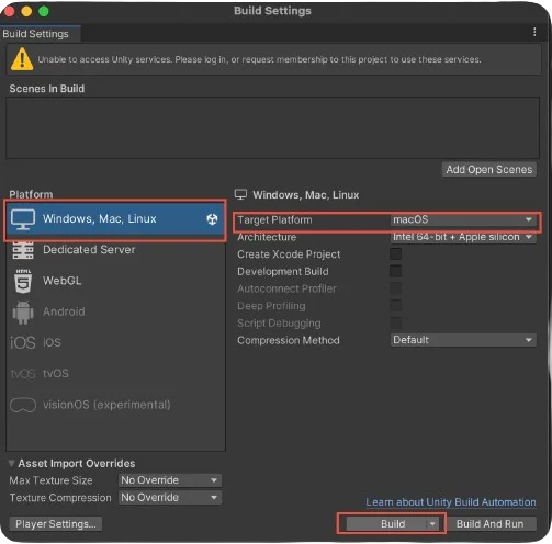 WebGLoption. - Click the Build button to build your game for WebGL.